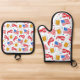 Patriotic American Flag Lobsters Beers Stars Oven Mitt & Pot Holder Set