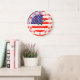 A unique antique style America flag clock in red, white and blue hues. Designed using the flag of America and adding a little vintage treatment. Produced by Sarah Trett. Would look great in a patriotic bedroom or lounge or bar.