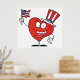 A patriotic American heart with a happy face wearing a hat and waving a flag. This design looks really effective on these Poster