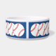 This patriotic pet bowl features red and white baseballs on a blue background for a special sports fan's pet. Easily customise the name or just delete it.