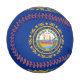 Crafted with precision and attention to detail, this baseball ball showcases the vibrant colours and symbolism of the New Hampshire state flag. The design prominently displays a blue field with the state seal centred in the middle. The seal features the frigate Raleigh sailing near a granite boulder with the state motto "Live Free or Die" written in yellow above the seal.