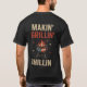 This bold 2-sided black T-shirt is made for true backyard patriots. The front design features crossed spatulas with stars and stripes, while the back showcases a flaming American grill with the phrase “Makin’ Grillin’ Chillin’.” Perfect for 4th of July BBQs, cookouts, or tailgate parties.