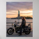 Patriotic Biker Statue of Liberty Sunset Waterside Poster