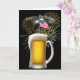 Sparklers and an American flag in beer mug with fireworks on black background for birthday.