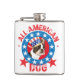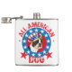 The flask itself is fine. It’s a cheap flask, obviously bought in bulk, however am prepared to overlook that. Given that it is a personalized item, I would have liked to have seen gift boxing instead of the generic packaging. Terrible printing, and/or quality. It’s a cheap, tacky vinyl. It is not cut straight and is also applied in a way that it is overhanging the bottom, causing the glue to catch on items and it will eventually roll and tear, damaging the wrap.