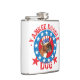 The flask itself is fine. It’s a cheap flask, obviously bought in bulk, however am prepared to overlook that. Given that it is a personalized item, I would have liked to have seen gift boxing instead of the generic packaging. Terrible printing, and/or quality. It’s a cheap, tacky vinyl. It is not cut straight and is also applied in a way that it is overhanging the bottom, causing the glue to catch on items and it will eventually roll and tear, damaging the wrap.