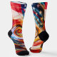 Vibrant abstract socks featuring a dynamic fusion of American and Chinese flag elements, painted in swirling red, blue, yellow, and white brushstrokes. A bold, artistic statement piece for cultural enthusiasts and lovers of expressive design.