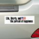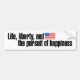 Life, liberty, and the pursuit of happiness bumper sticker, with an American flag. Show your American pride with a patriotic t-shirt, button, or gift! Great for 4th of July, or anytime to celebrate the USA!