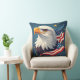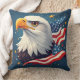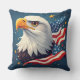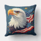 Cartoon eagle head with floating American flag, comic book style, bold shadows, intense expression, dynamic composition, for merchandise and apparel design