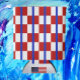 Keep your drinks cool in bold, patriotic style with this eye-catching beverage cooler featuring a red-and-white chequerboard background and vertical blue stripes. Perfect for Fourth of July parties, backyard BBQs, tailgates, or any celebration that calls for a splash of colour and personality. Durable and easy to carry, this cooler adds both function and flair to your summer gatherings.