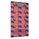 This red, white, and blue clipboard is a patriotic and fun thank you gift for the football team coach! The Background is our original photograph of an American Flag, repeating. Lettering is dark blue. It is decorated with white footballs with red stitching. On the front, sample text has room for 3 lines, which can easily be modified or deleted. The back is the flag background with footballs and the words "God Bless America" and "Land That I Love". Text can easily be modified or deleted. Your football team coach will love it! A great "Thank You" from the team. All Rights Reserved © 2015 Alan & Marcia Socolik.