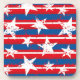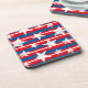 These hard plastic coasters are shown in a patriotic July 4th stars and stripes print design.