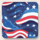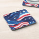 These hard plastic coasters are shown in a patriotic July 4th stars and stripes print design.