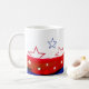 This ceramic coffee mug is shown with a patriotic red, white and blue stars graphic print.