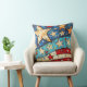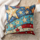 A stylised and patriotic throw pillow with stars and red, white and blue.