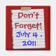 "Don't Forget!" in bold red and the date in bold blue text on a note written on a torn out sheet of paper taped to a red background. A fun, but very practical magnet that's sure to be the perfect reminder for anyone. Easy to customise the text in your own words and that special day not to be forgotten! Great for upcoming Fourth Of July, weddings, birthdays, anniversaries, showers, reunions, any special occasion and save the date. Just don't forget to save that date!