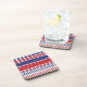 Hard plastic drink coaster shown in a patriotic stars and stripes print, perfect for your July 4th home décor.