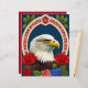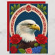 The image of a bald eagle, capturing the bird's majestic features, with an added artistic touch of classical red, white, and blue floral elements. Designed using state-of-the-art technology, the floral elements include roses, leaves, and flowers.