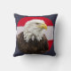 A wonderful image of a bald eagle posing in front of an American Flag.