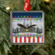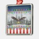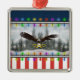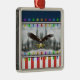 A beautiful and classy silver frame look style USA patriotic eagle square shaped premium ornament. This ornament features a flying eagle in a snowy winter background, holding a yellow ribbon. It almost appears as if he is flying off the ornament. The top and bottom of ornament background is blue and red and white stripes as the American flag. There are multicolored glowing Christmas lights across the top and bottom. The wonderful unique digital artwork is displayed inside an elegant and classy silver premium style ornament, hanging from a red ribbon. It is a great addition to any ornament collection, a great gift for a veteran or someone currently serving in the U.S. military, or a patriotic collector. The art is displayed on the front side, the back side is silver. This design is available on different shapes and styles of ornaments and other wonderful gift items too. For more military Christmas holiday themed styles of ornaments, gifts, stickers, tags, cards, stamps and much more please visit our store!