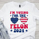 Make a bold statement with this eye-catching "I'm Voting for the Felon 2024" T-shirt. This unique design features heart-shaped sunglasses adorned with the American flag, combining patriotism with a touch of humour. The vibrant red, white, and blue colours make it perfect for election season, rallies, or just showing your political stance with a fun twist. This shirt is sure to spark conversations and bring a smile to those who see it. Show your support and make a memorable impression with this one-of-a-kind political tee.