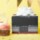 A firefighter themed thin red line wrapping paper. It features a torn out style look from the wrapping paper itself. It features a slate grey background in between torn out black. A cool way to display the item before your gift recipient tears into the wrapping paper themselves.