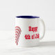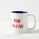 This ceramic coffee mug is shown with a patriotic USA Flag and Happy 4th of July text print.