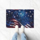 Doormat is shown with a July 4th patriotic USA Flag print design.