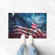Doormat is shown with a July 4th patriotic USA Flag print design.