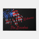 Patriotic Flag Fireworks Red Name Welcome Door Mat