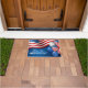 Doormat is shown on a July 4th patriotic USA Flag print design.