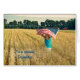 Young girl running in a wheat field with American flag. Card can be used for Birthday, Veterans Day, or any patriotic event.