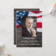USA American Flag Memorial Funeral Program / Celebration Of Life Program . This patriotic celebration of life program features a United States of America Flag on a dark wood background. Personalise this american flag celebration of life funeral program with your loved ones photo, name & dates, event location, and order of service on the back. This American Flag photo funeral program will be a treasured keepsake. Perfect for a military funeral, and veteran memorial service or military celebration of life. In Loving Memory Military Memorial American Flag. COPYRIGHT © 2020 Judy Burrows, Black Dog Art - All Rights Reserved. Patriotic Funeral Order Of Service Flag Program