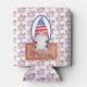 This cooler has a red and blue fireworks pattern, over a white background. Over the background is a Patriotic Gnome and a patch that reads "4th of July".