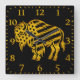 A striking golden bison adorned with American flag patterns stands prominently. This artwork showcases a blend of natural strength and national pride, highlighting the bison's significance in American culture and history.