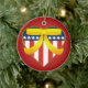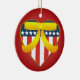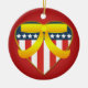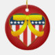 A beautiful double sided round U.S. patriotic heart, with yellow ribbon ceramic ornament. This ornament features a patriotic heart coloured in red white and blue, with stars and stripes design to reference the American Flag. The heart also has a golden trim, and a big yellow ribbon to support the troops. The heart is on a red background. The digital art is displayed on both the front and back of the ornament. A beautiful ornament to support the troops, for friends and family, a great addition to any ornament collection, a great gift for a veteran or someone currently serving in the U.S. military, or a patriotic collector. This design is available on different shapes and styles of ornaments and other wonderful gift items too. For more military Christmas holiday themed styles of ornaments, gifts, stickers, tags, cards, stamps and much more please visit our store!