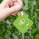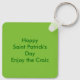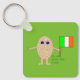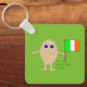 This fun keychain features a funny cartoon of an egg with arms and legs. The egg has arms and legs and a small crack in its head exposing the white inside. It has blue eyes with a black pupil and a big smile where the yolk of the egg can be seen. The eggshell looks rough. This patriotic Irish egg proudly holds its flag and there is green text below the flag that reads "it's all about the craic". This fun design is great for Saint Patricks Day or for proud Irish men and women. There is custom text on the back so you can include a message of your choice. The default message reads Happy Saint Patricks Day enjoy the craic.