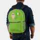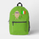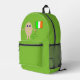This awesome backpack features a funny cartoon of an egg with arms and legs. The egg has arms and legs and a small crack in its head exposing the white inside. It has blue eyes with a black pupil and a big smile where the yolk of the egg can be seen. The eggshell looks rough. This patriotic Irish egg proudly holds its flag and there is green text below the flag that reads "it's all about the craic". This fun design is great for Saint Patricks Day or for proud Irish men and women.