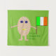 This awesome tapestry features a funny cartoon of an egg with arms and legs. The egg has arms and legs and a small crack in its head exposing the white inside. It has blue eyes with a black pupil and a big smile where the yolk of the egg can be seen. The eggshell looks rough. This patriotic Irish egg proudly holds its flag and there is green text below the flag that reads "it's all about the craic". This fun design is great for Saint Patricks Day or for proud Irish men and women.