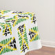 Modern, patriotic JAMAICA JAMAICA tablecloth, designed to celebrate JAMAICA'S 60TH ANNIVERSARY OF INDEPENDENCE. The design shows JAMAICA JAMAICA in the well known yellow saltire flag of JAMAICA in an all-over basketweave-type pattern. This Jamaican independence tablecloth would be ideal for patriotic Jamaican celebrations, weddings, conventions, conferences, etc. Matching JAMAICAN party supplies and gift ideas are available in the JAMAICA Collection by Berean Designs.