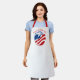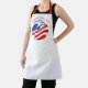 This apron is shown in a patriotic Happy 4th of July print, perfect for July 4th BQ.