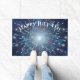 Doormat is shown with a festive July 4th patriotic fireworks print design.