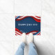 Doormat is shown with a festive July 4th patriotic flag print design.