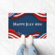 Doormat is shown with a festive July 4th patriotic flag print design.