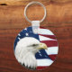 Bald eagle over an American flag keychain
