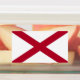 Patriotic labels with flag of Alabama State, USA