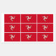 Crafted with meticulous attention to detail, these labels are more than just practical; they celebrate the unique heritage and cultural identity of the Isle of Man. The design prominently features the iconic triskelion (three-arm symbol) on a red background, representing the island's history, resilience, and cultural richness.