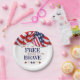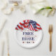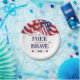 This design features red, white, and blue bunting across the top and stars along the bottom with "Land of the FREE because of the BRAVE" message. Great for patriotic holidays or all summer.
