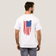 The flag in on both sides of the t-short. It is grunge and modern in red white and blue.