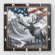 Patriotic Moose Mountain Landscape Square Wall Clock
